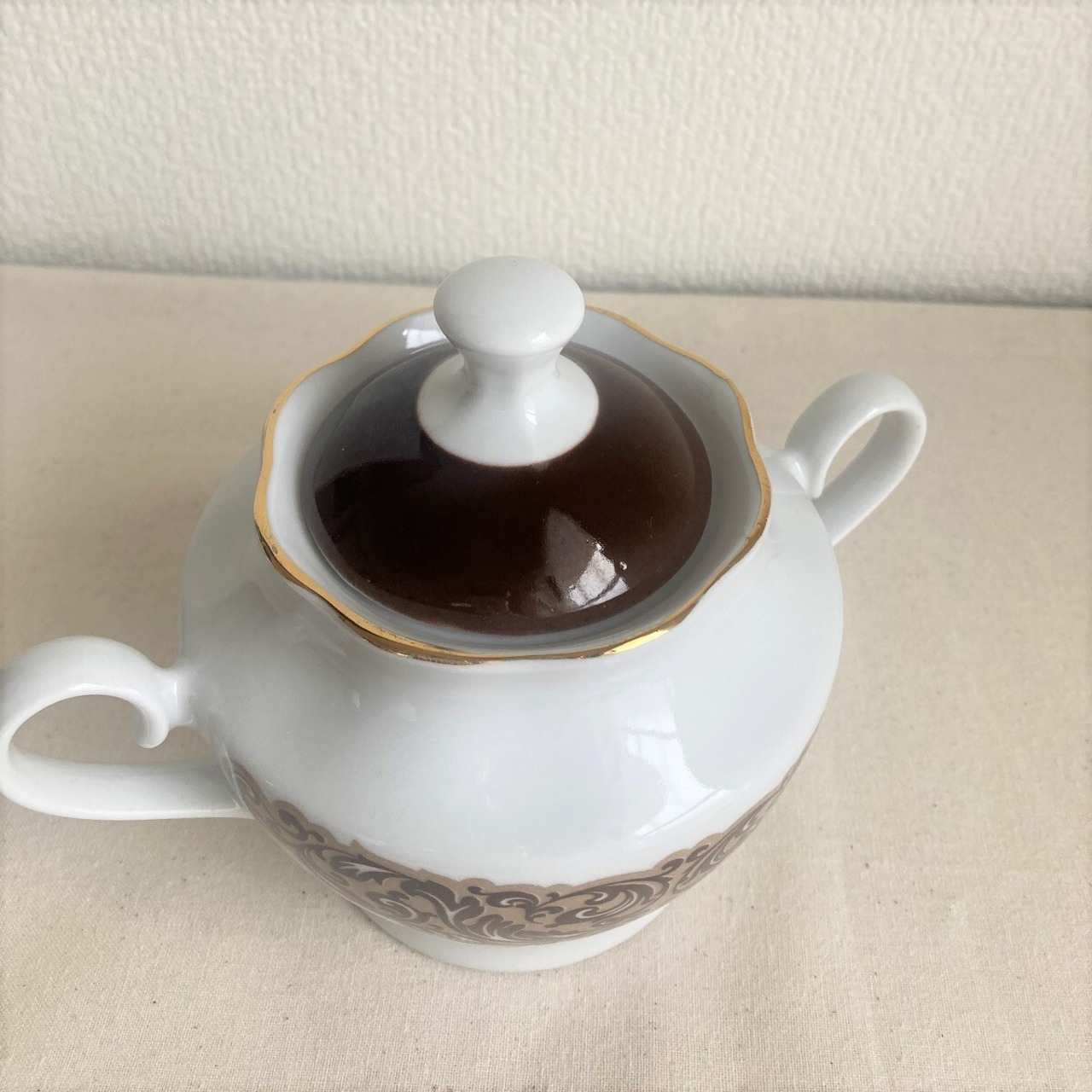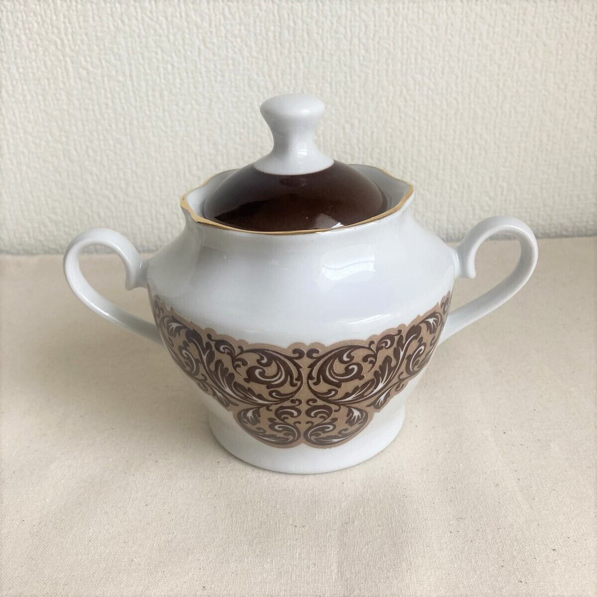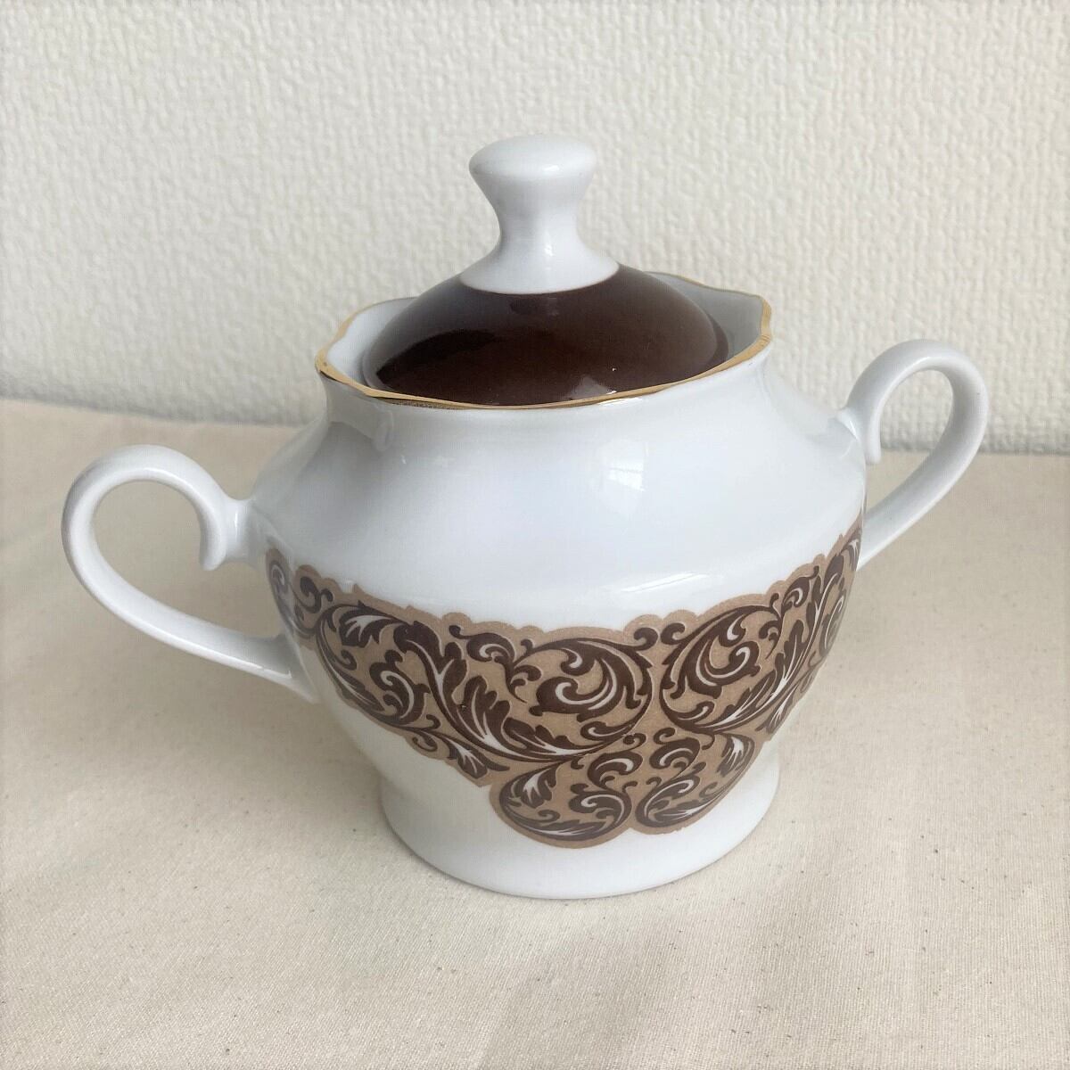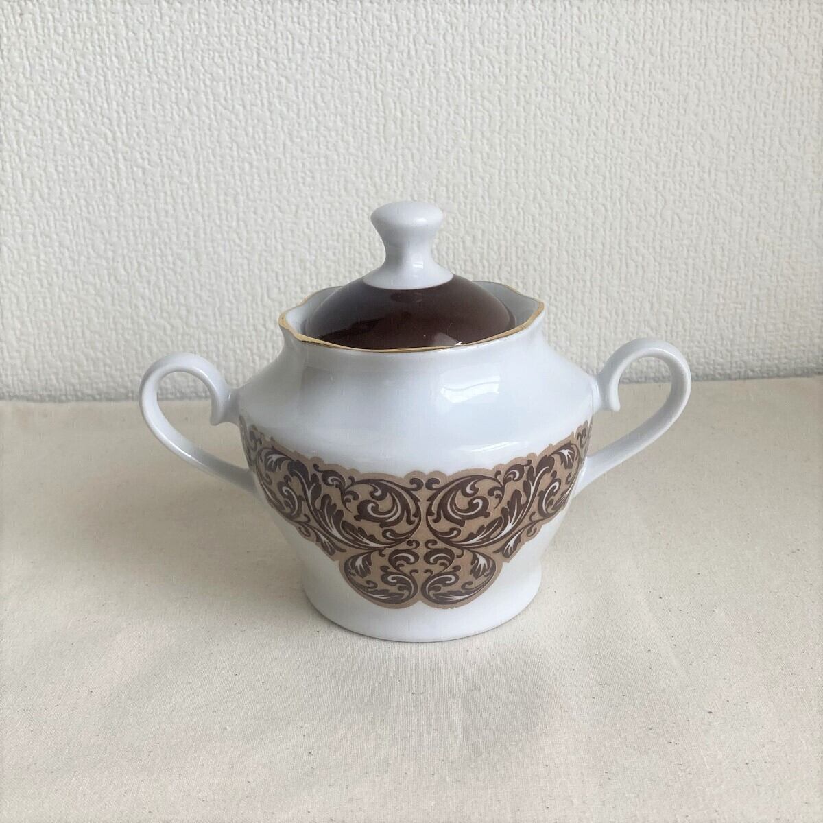 茶系柄シュガーポット